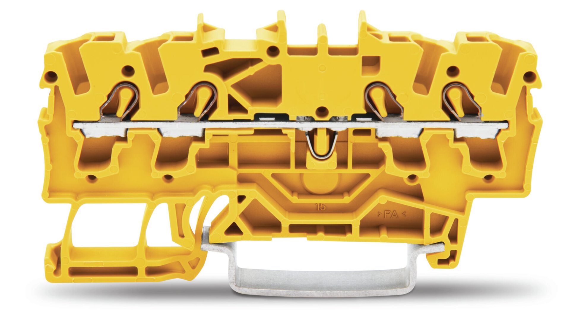 4 線普通接線端子台; 2.5 mm²; 適用於 Ex e II 應用; 中心和側面標記; 用於 DIN-導軌 35 x 15 和 35 x 7.5; Push in CAGE CLAMP®; 2,50 mm²; 黃色