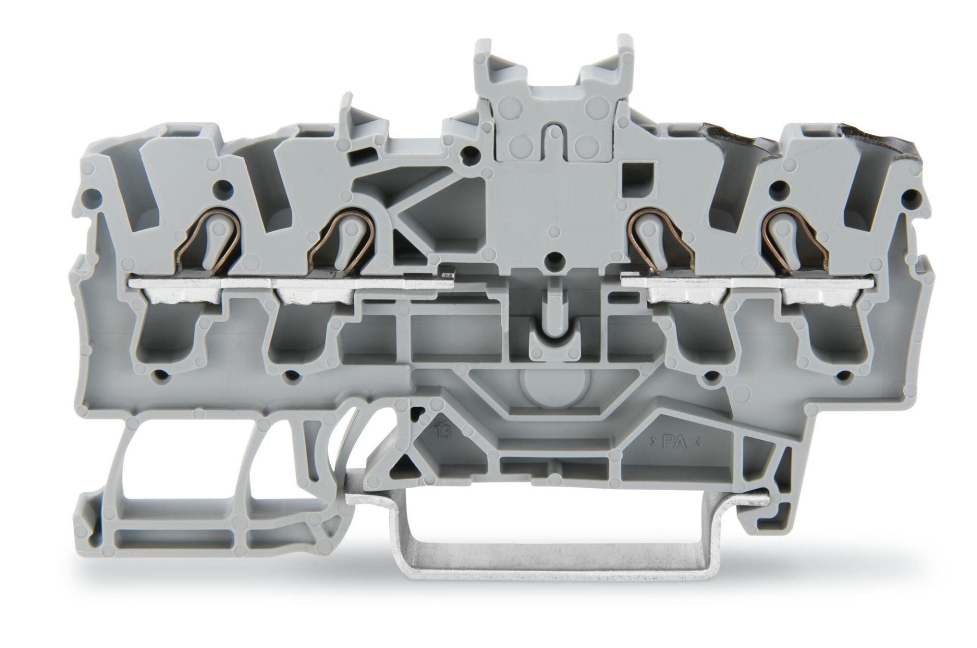 雙電位接線端子台; 2.5 mm²; 帶有兩個中心標記位; 用於 DIN-導軌 35 x 15 和 35 x 7.5; Push in CAGE CLAMP®; 2,50 mm²; 灰色